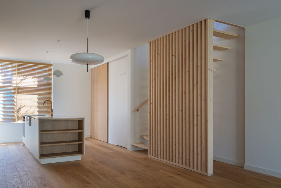 In Watergraafsmeer is een woning aan de achterzijde uitgebreid met een aanbouw voorzien van een zitkuil, waarbij de zitelementen ook ruimte bieden voor het opbergen van spullen. De indeling van de woning is verbeterd door de trap centraal in de woning te plaatsen, dit zorgt voor meer licht in de gehele woning en biedt ruimte voor een kookeiland aan de voorzijde.